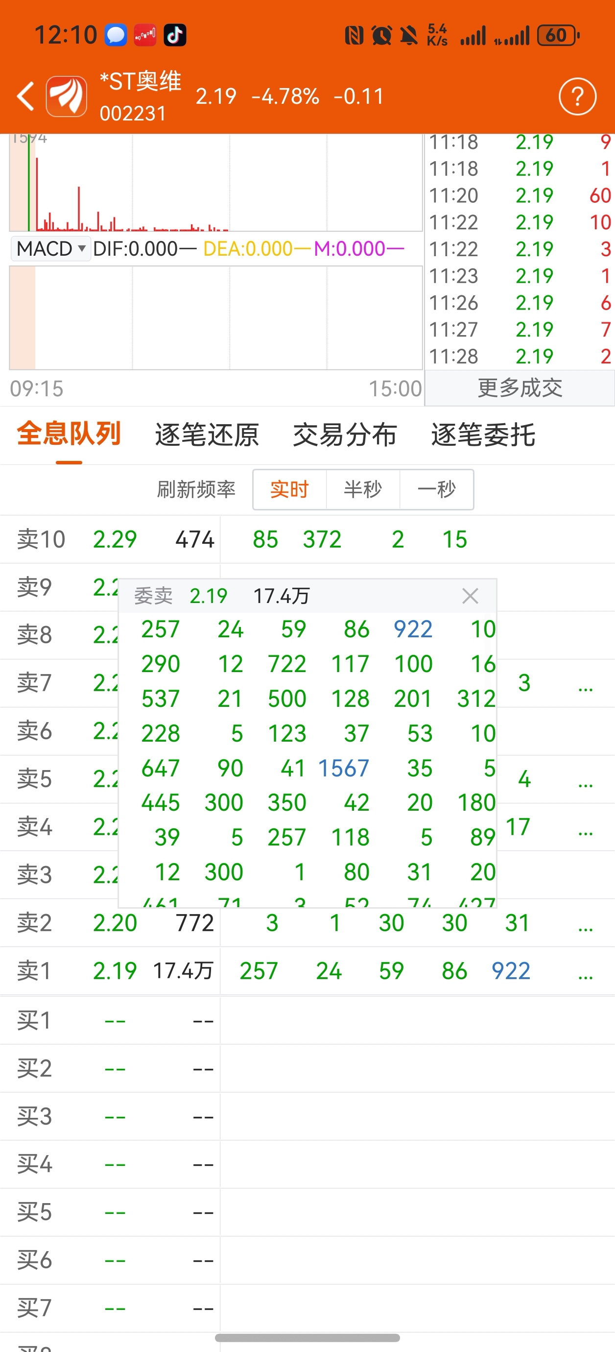 $*ST奥维(SZ002231)$ 排不到的赶紧别排了