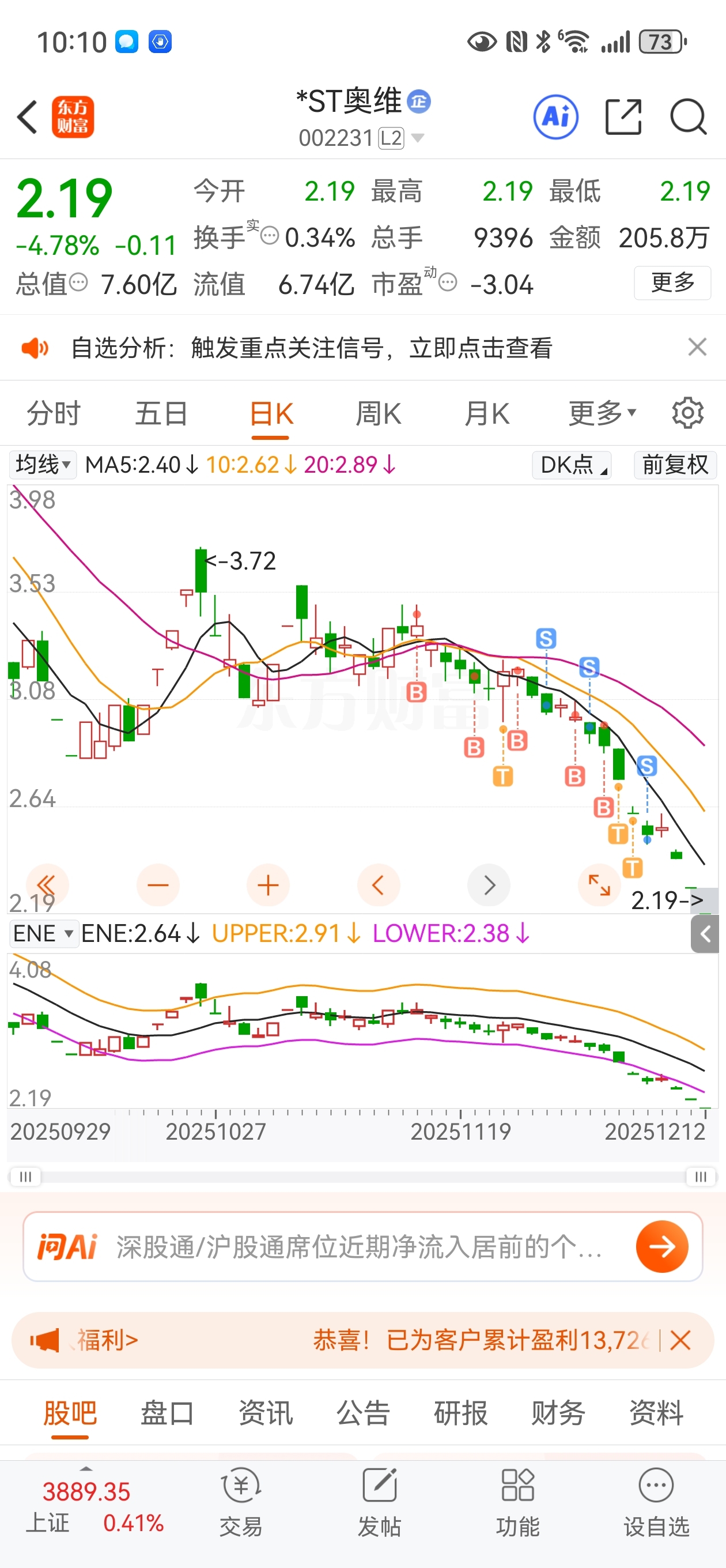 $*ST奥维(SZ002231)$ 我贪它反弹,它特么盯着我的本金。