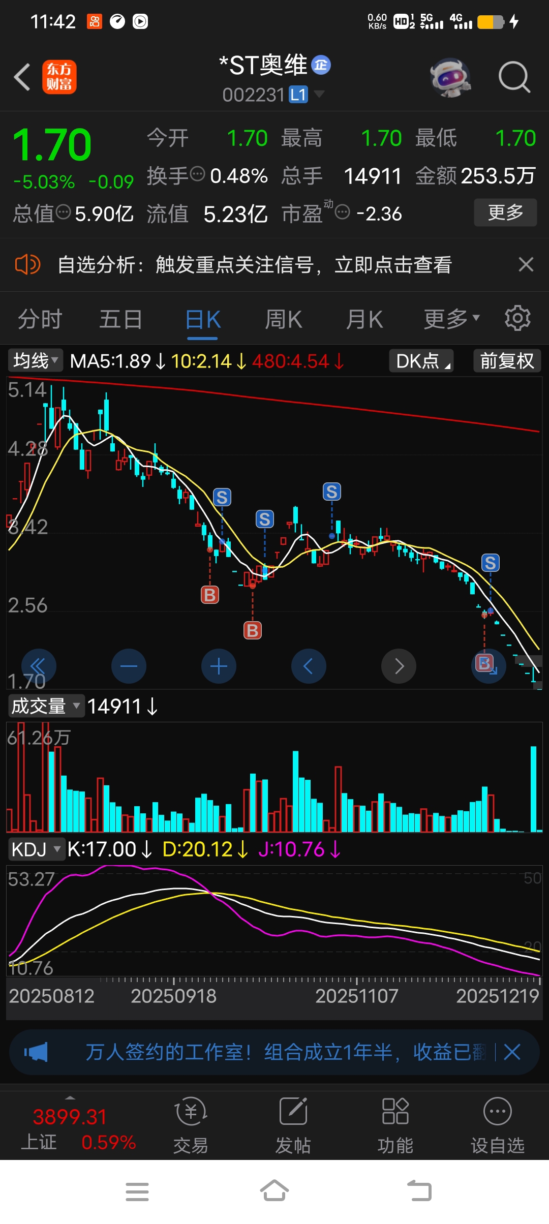 $*ST奥维(SZ002231)$ 还好昨天见要开板忍住了没抄地板!!!这麻雀还真还有一字地板连呀!草!这回是真幸运!!差点点就上当!!!