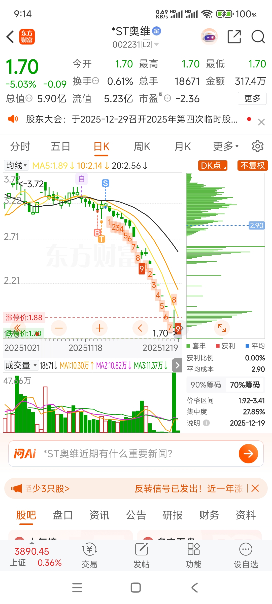 $*ST奥维(SZ002231)$ 是要退市了吗,还好大跌之前清仓了