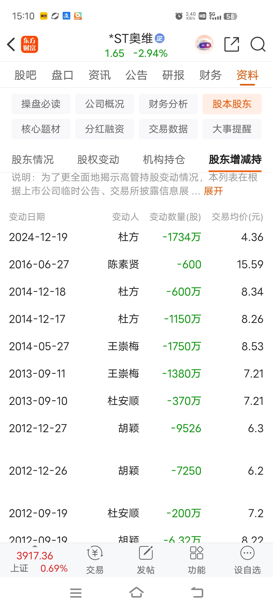 $*ST奥维(SZ002231)$ 自己人都不看好