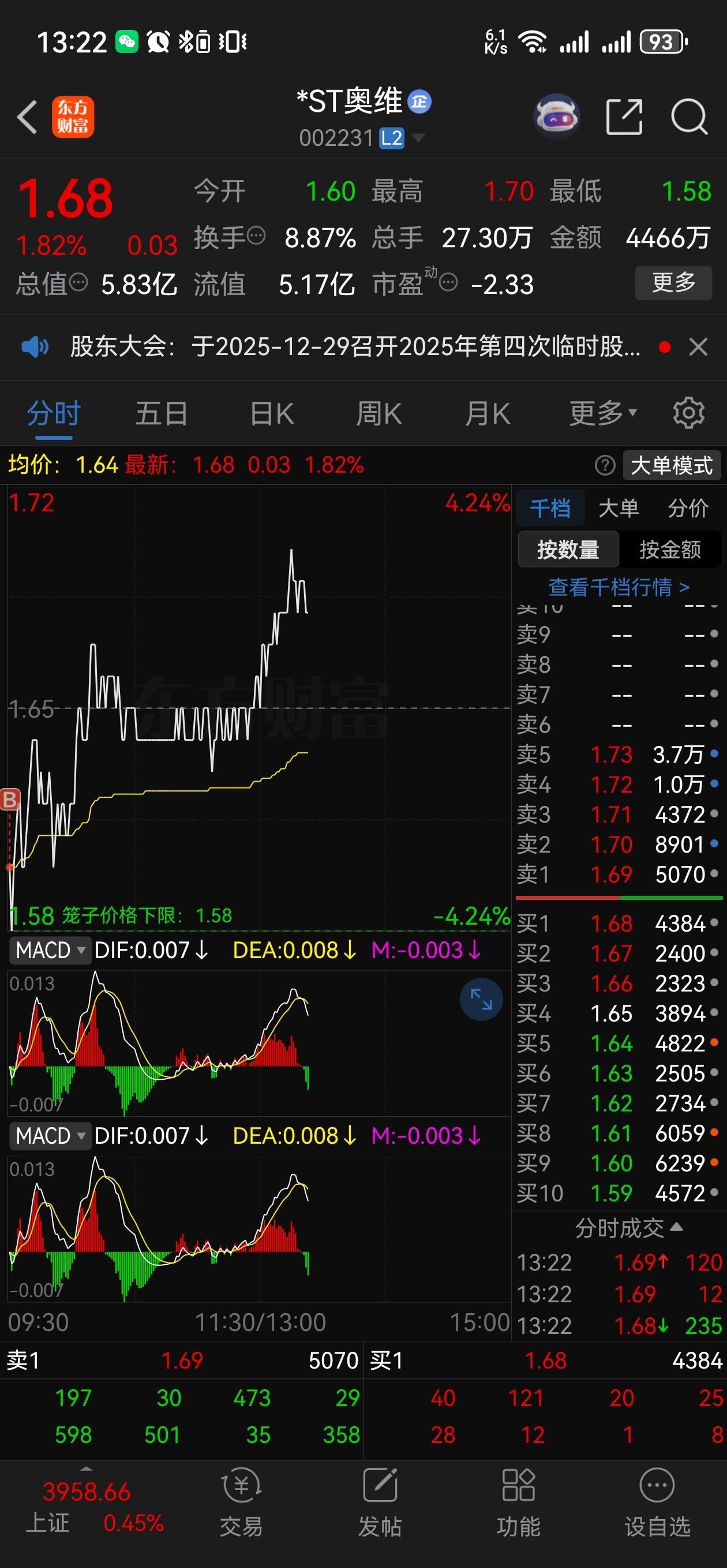 $*ST奥维(SZ002231)$ 一手哥加入战斗