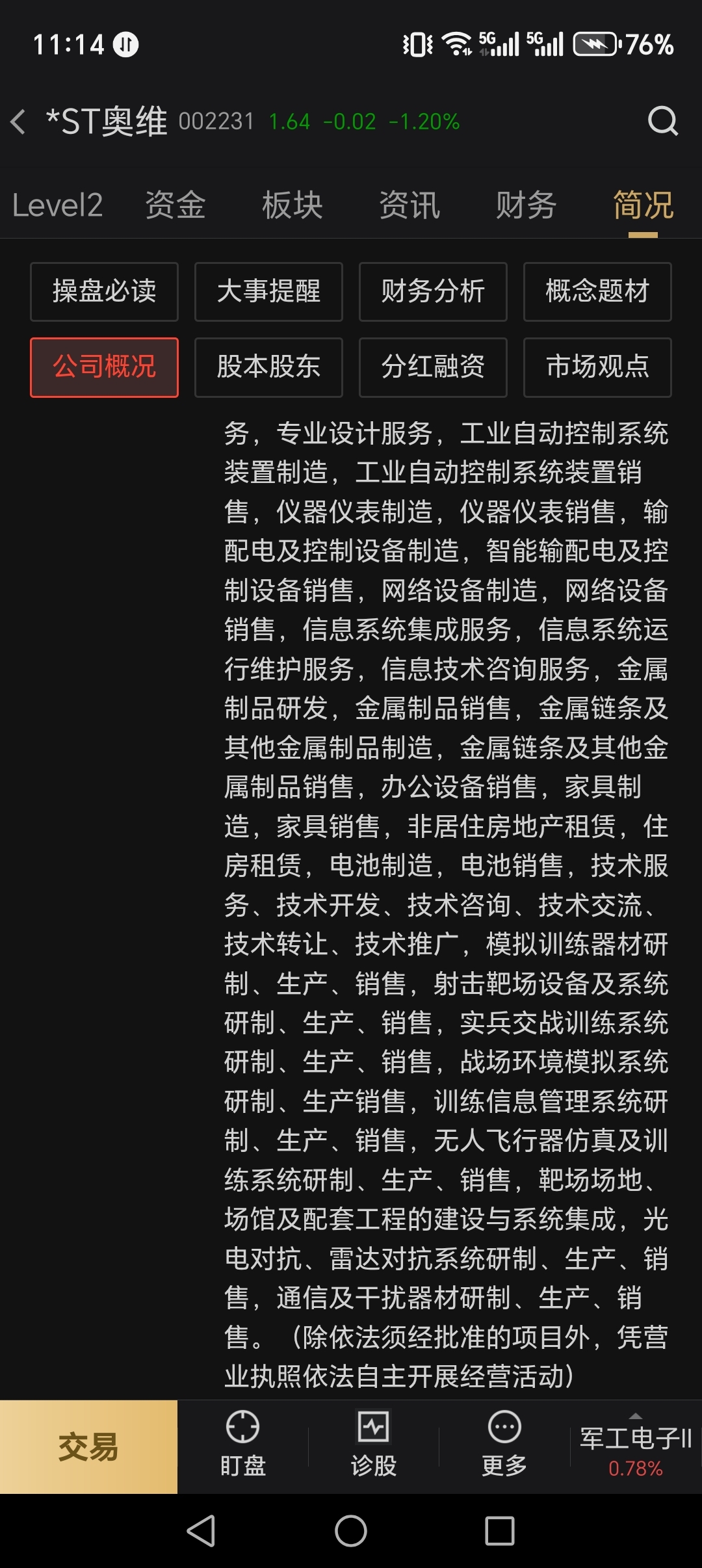 $*ST奥维(SZ002231)$ 股价除了便宜还是便宜。要么就是退市,要么就是发财。看它是军工企业就退不了市。