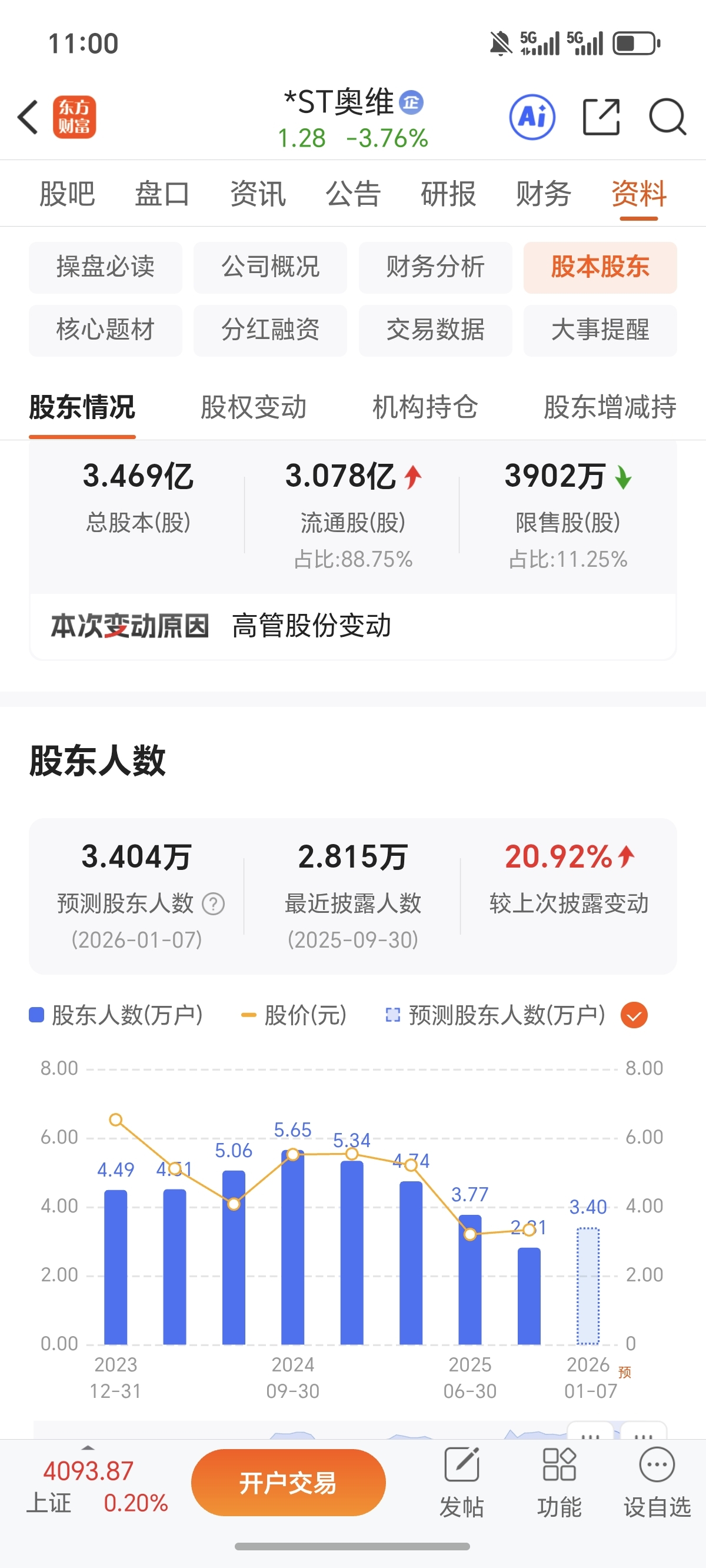 $*ST奥维(SZ002231)$ 股东人数每天都在增