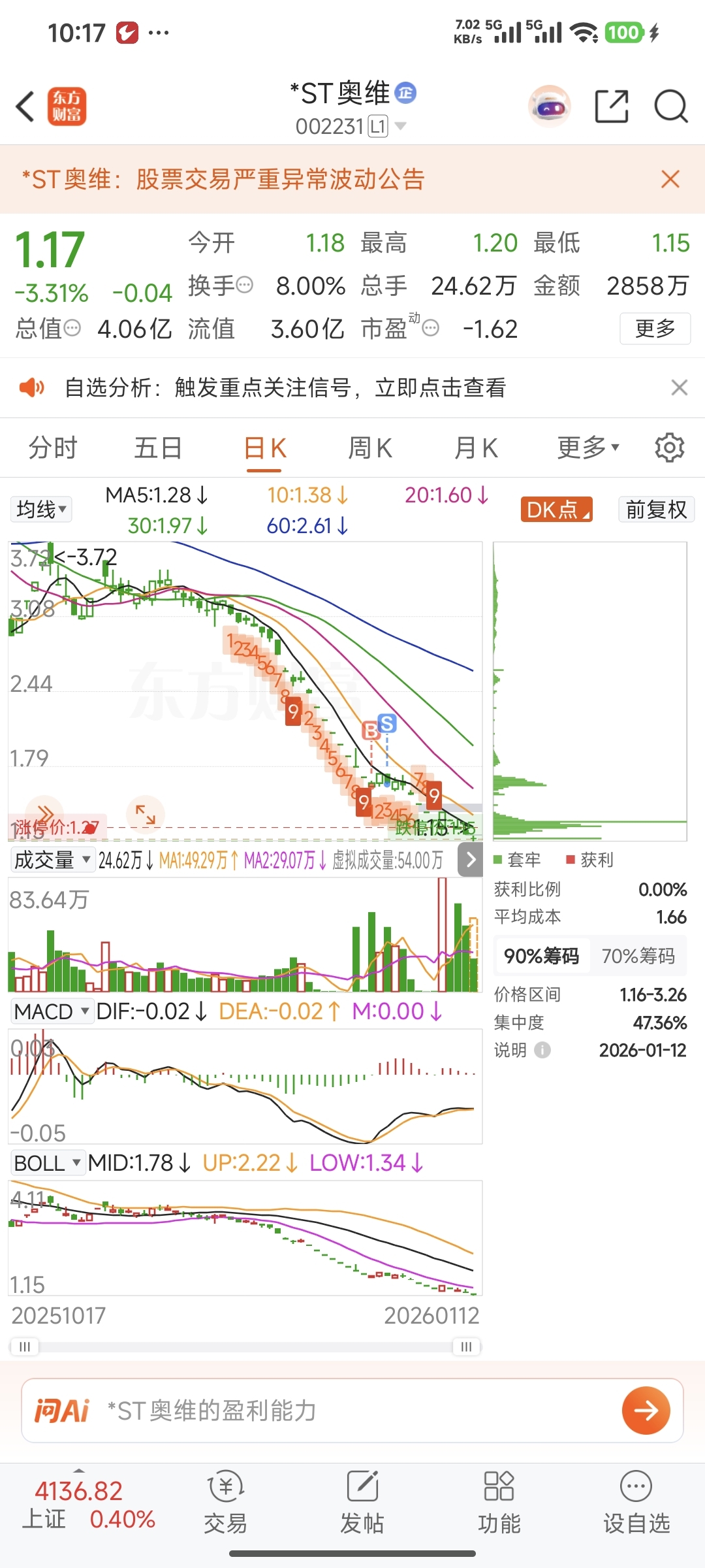 $*ST奥维(SZ002231)$ 1.62买的跑完了没