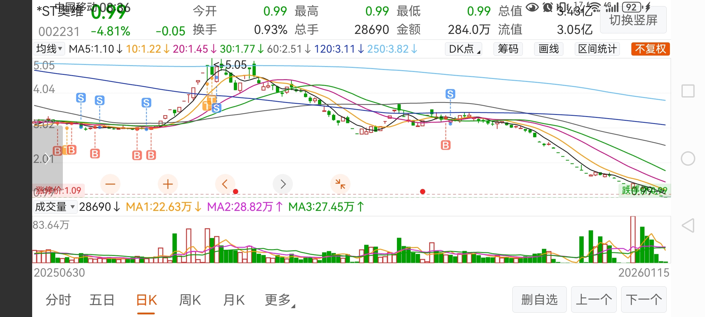 $*ST奥维(SZ002231)$ 周一决定生死,最后九天必须连续涨停。可惜了,这么好的概念,大股东一年多时间毫无作为!