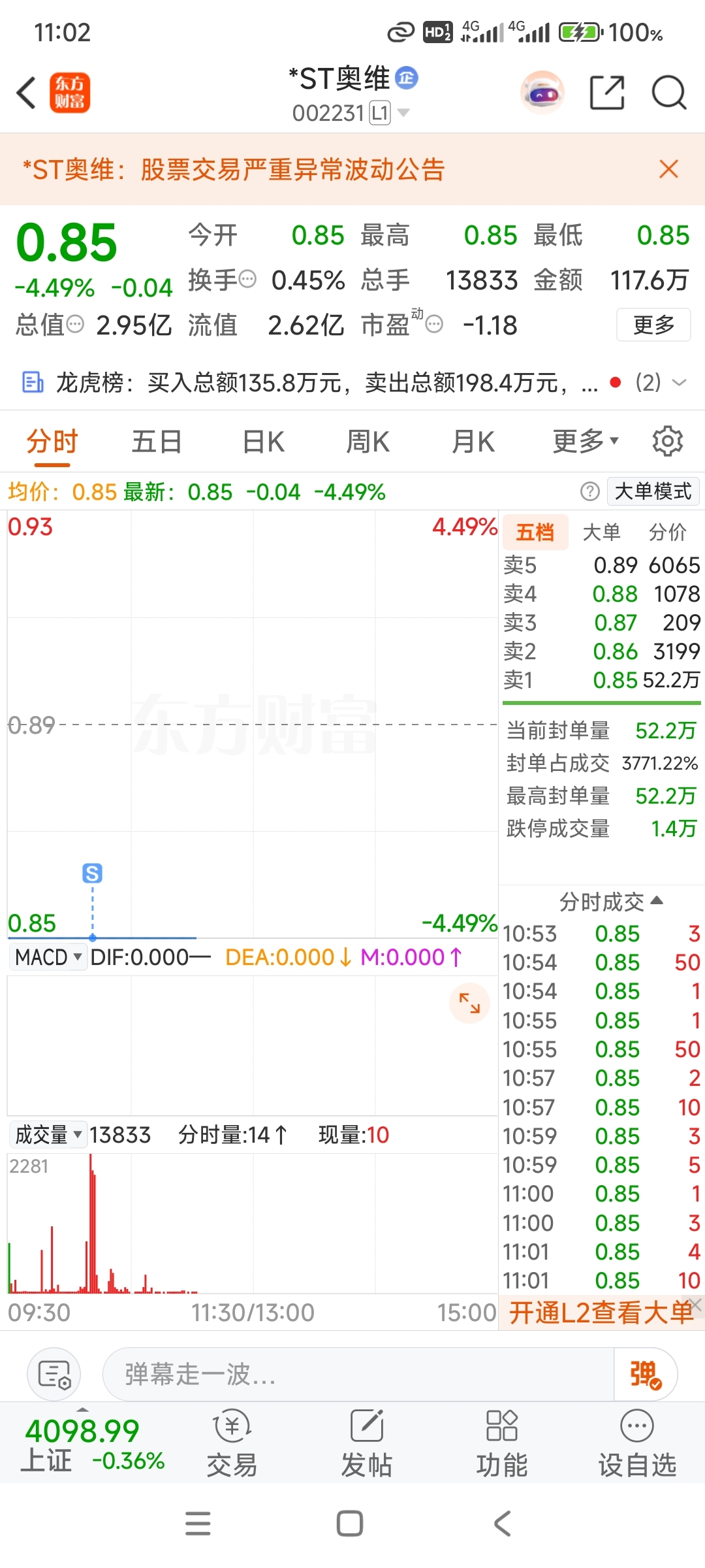 $*ST奥维(SZ002231)$ 今天出不去的,明天差不多应该能出去,我今天都出去了。