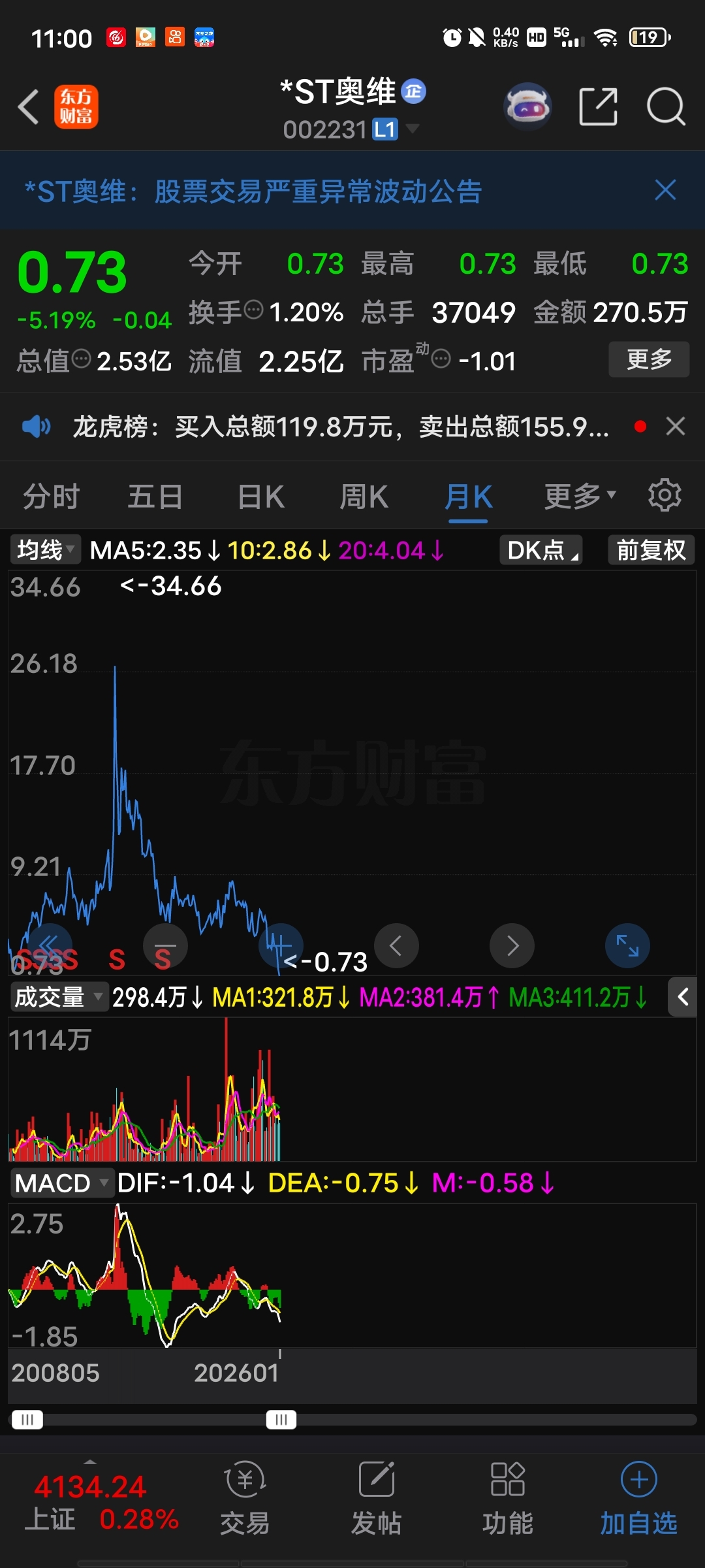 $*ST奥维(SZ002231)$ A股上市就是为了套现没意思!