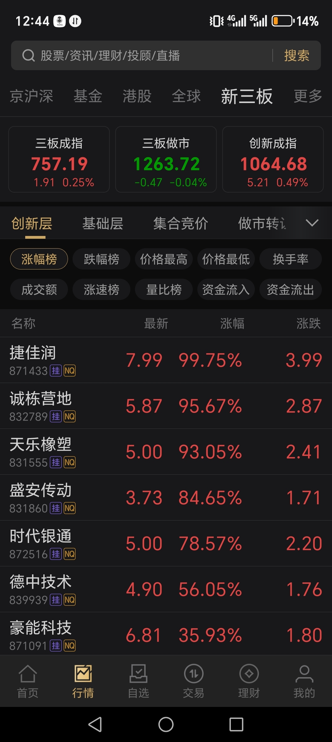 你看这新三板涨得多利害。就是没有交易的。