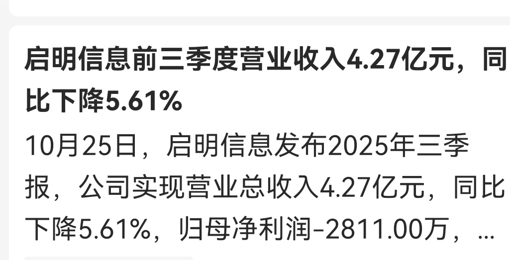 去年三季报比今年亏损还多,第二天涨停。今天业绩扎堆发布,压根没人在意启明业绩啥样