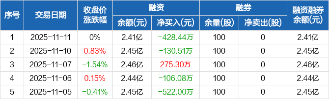 启明信息:融资净偿还428.44万元,融资余额2.41亿元(11-11)