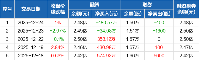 启明信息:融资净偿还180.57万元,融资余额2.48亿元(12-24)