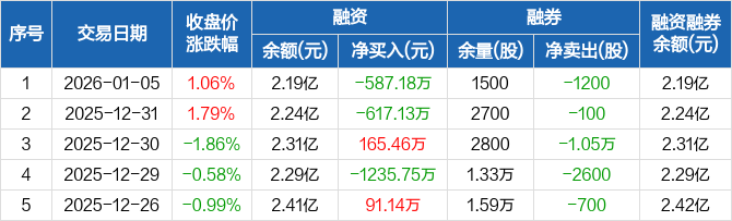 启明信息:融资净偿还587.18万元,融资余额2.19亿元(01-05)