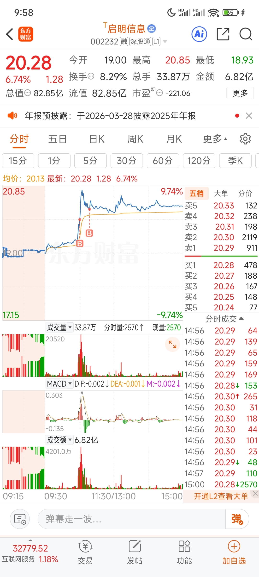 $启明信息(SZ002232)$ 明天有机会出来吗