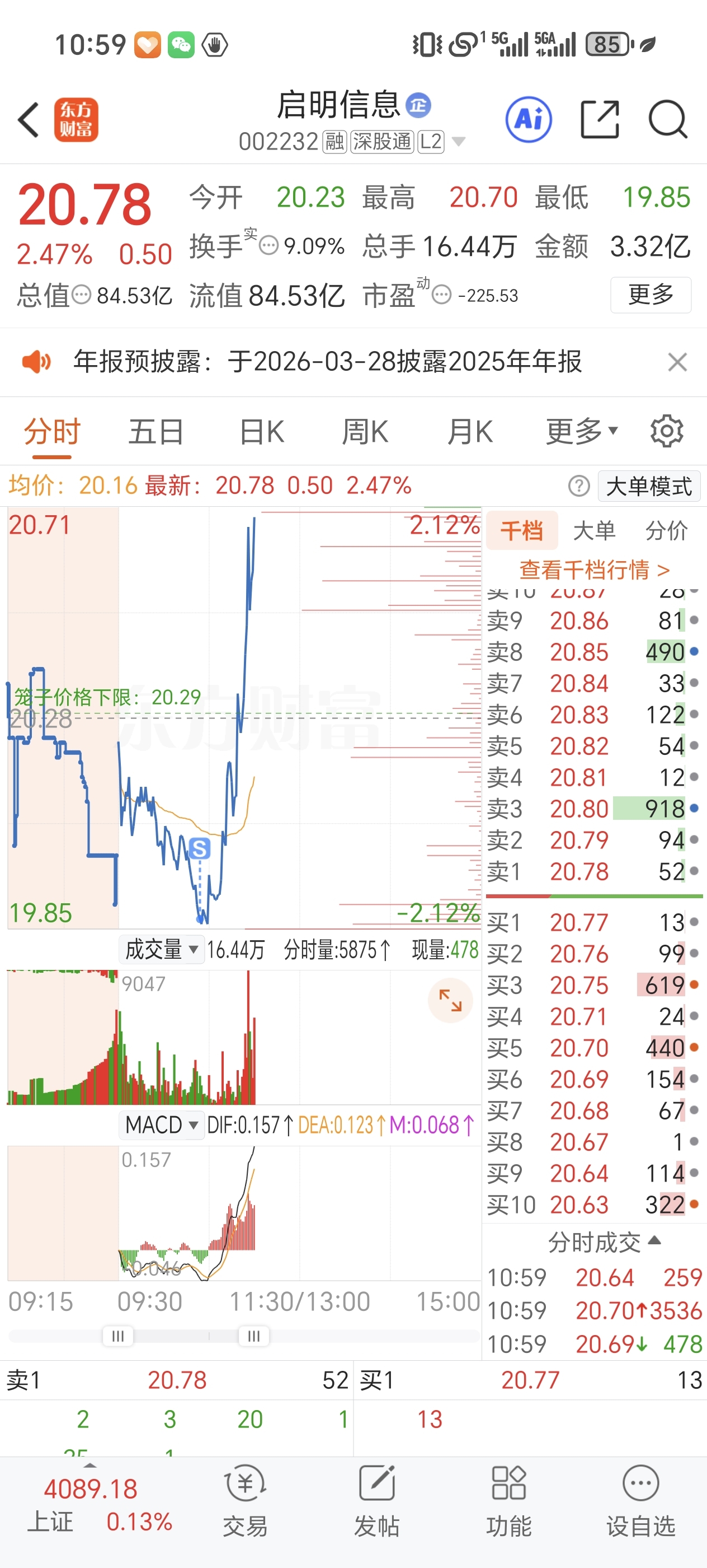 $启明信息(SZ002232)$ 倒在了最低点,绿着走的