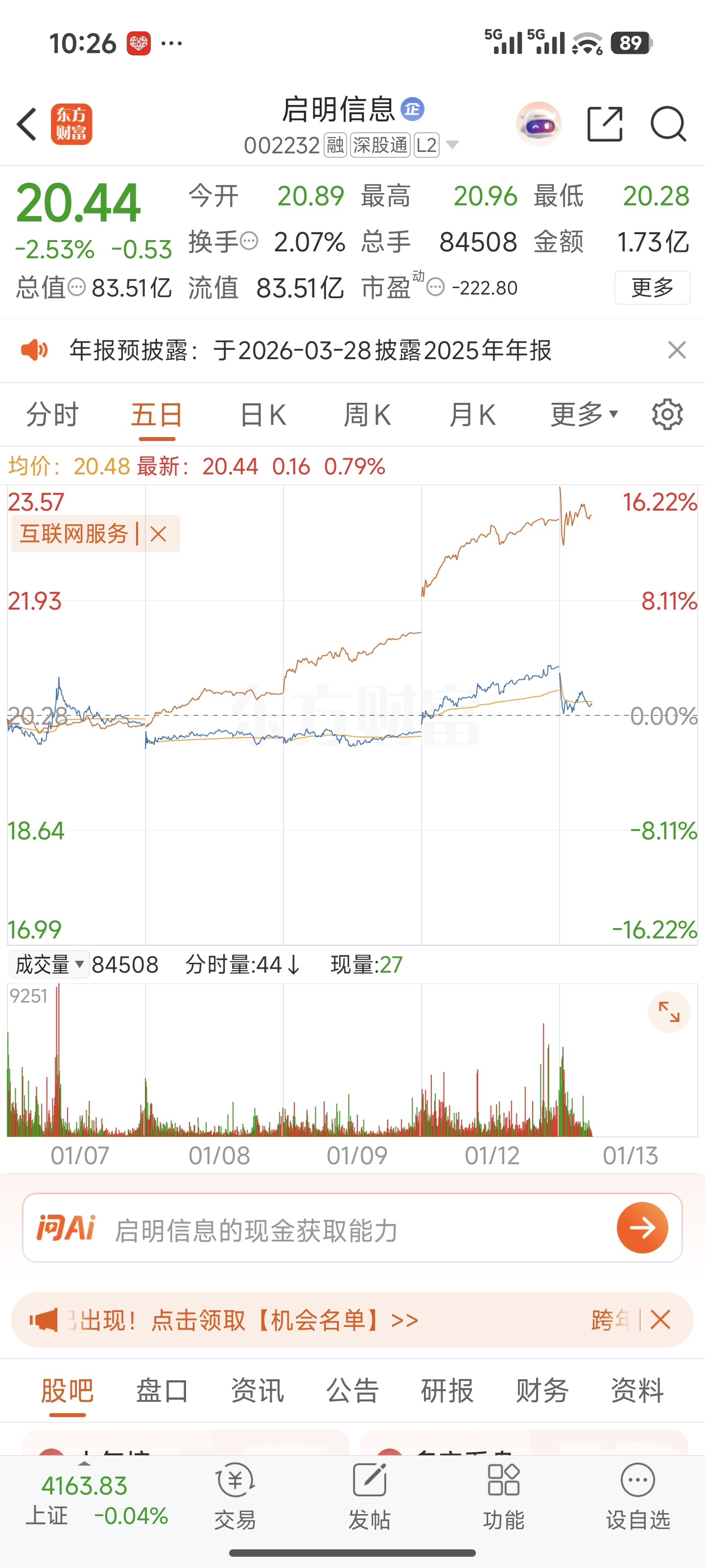 $启明信息(SZ002232)$ 五天,比板块少涨15个点,真是坑货啊