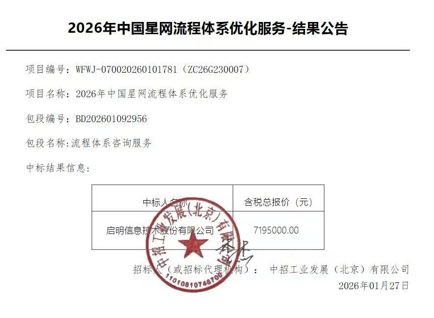 $启明信息(SZ002232)$ 中标中国星网