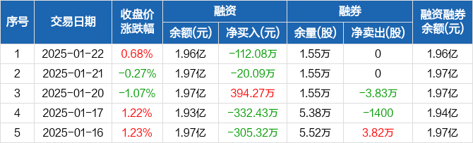 塔牌集团:融资净偿还112.08万元,融资余额1.96亿元(01-22)