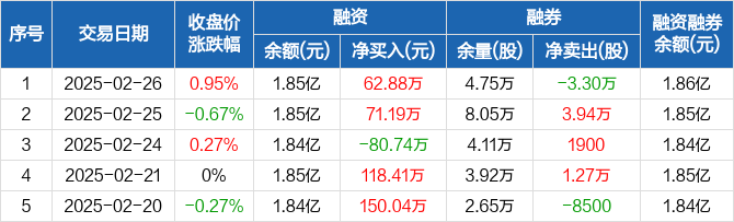 塔牌集团:融资净买入62.88万元,融资余额1.85亿元(02-26)