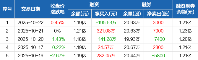 塔牌集团:融资净偿还195.63万元,融资余额1.19亿元(10-22)