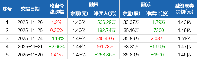 塔牌集团:融资净偿还536.29万元,融资余额1.4亿元(11-26)