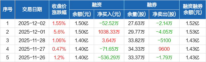 塔牌集团:融资净偿还52.52万元,融资余额1.5亿元(12-02)