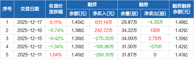 塔牌集团:融资净买入631.14万元,融资余额1.45亿元(12-17)