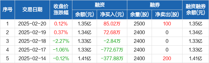 民和股份:融资净买入85.02万元,融资余额1.35亿元(02-20)