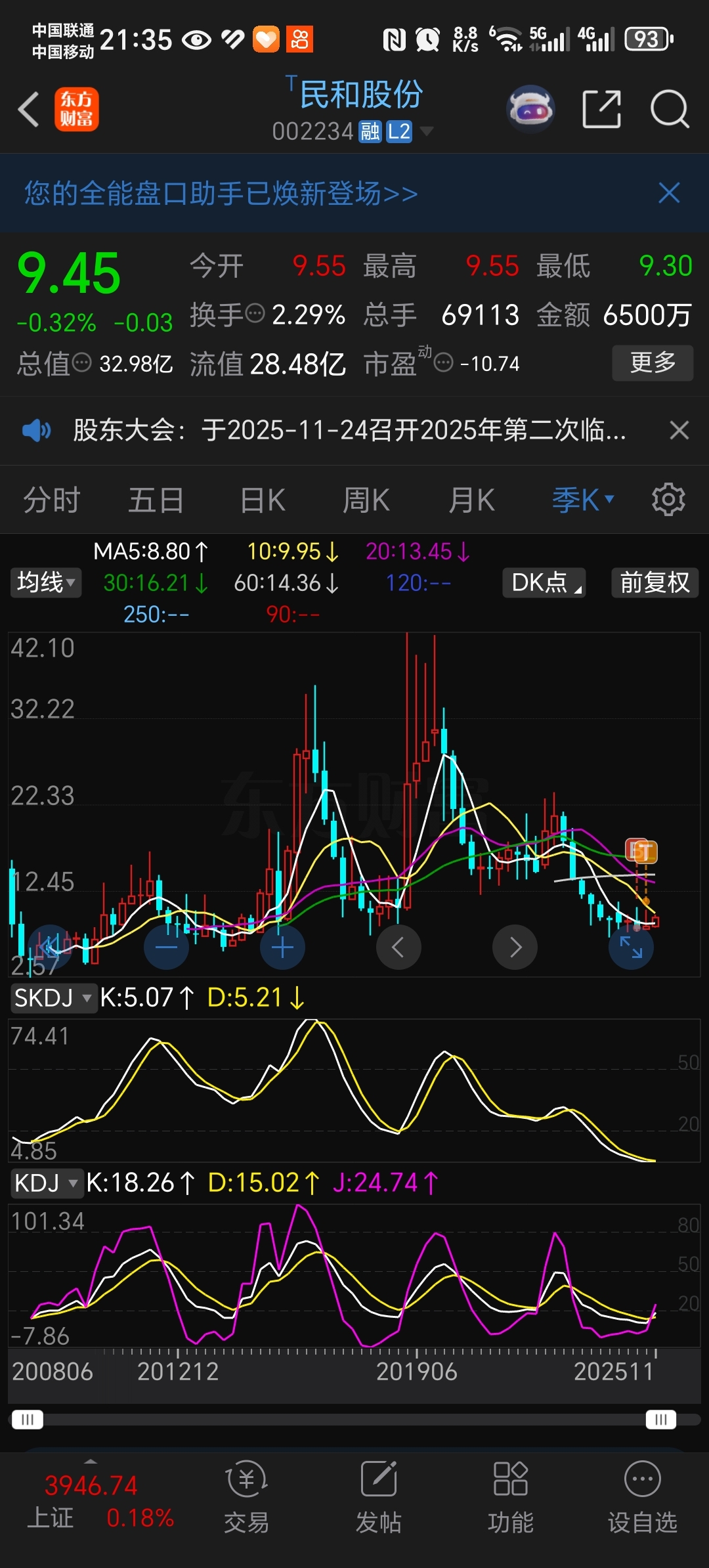 $民和股份(SZ002234)$ 前边几次k DJ季线金叉都是大涨,这次可以拭目以待