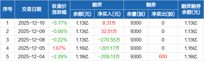 民和股份:融资净买入8.31万元,融资余额1.13亿元(12-10)