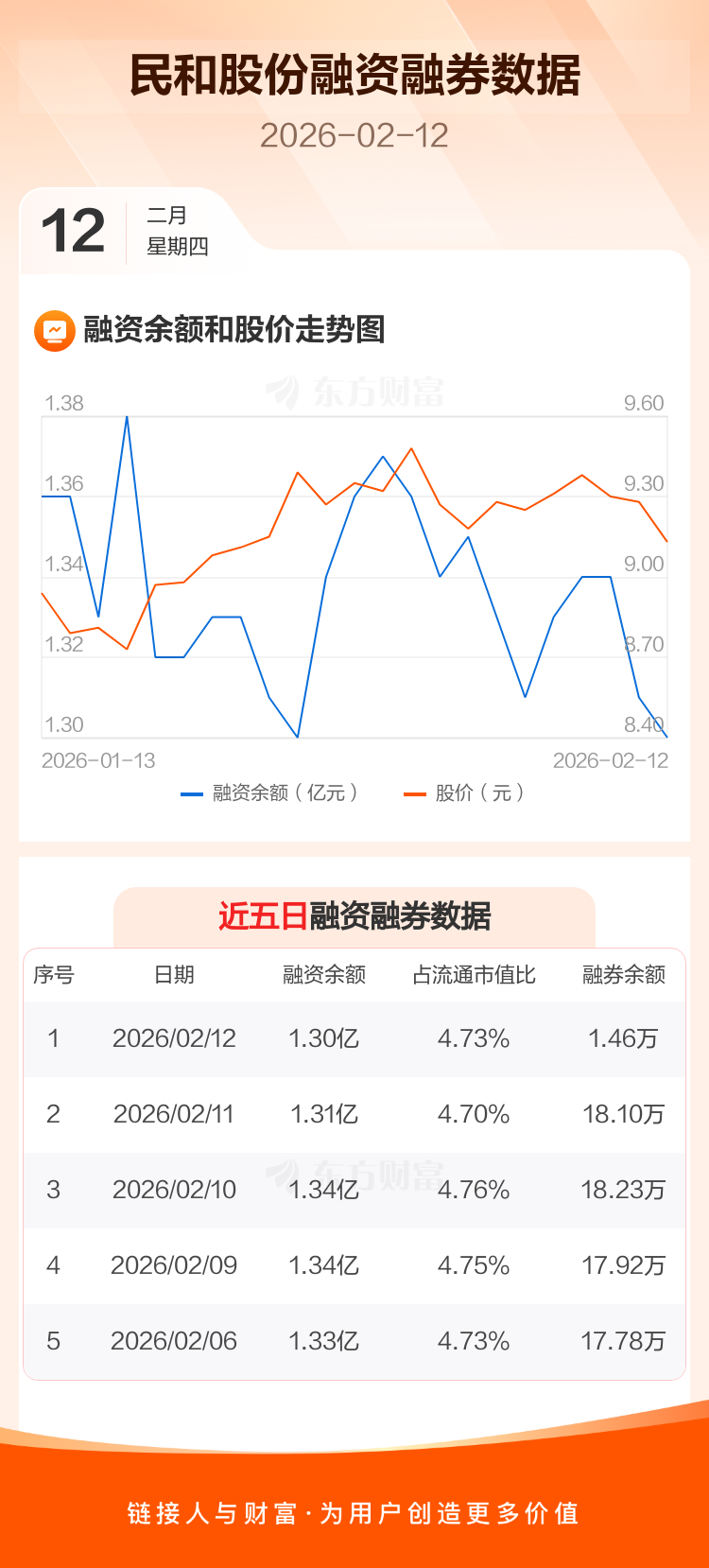 交易所最新数据显示,民和股份于2026年2月12日获融资买入248.62万元,融资偿还375.48万元,当日融资净偿还126.86万元。目前,该股融资余额1.30亿,占流通市值比例为4.73%。