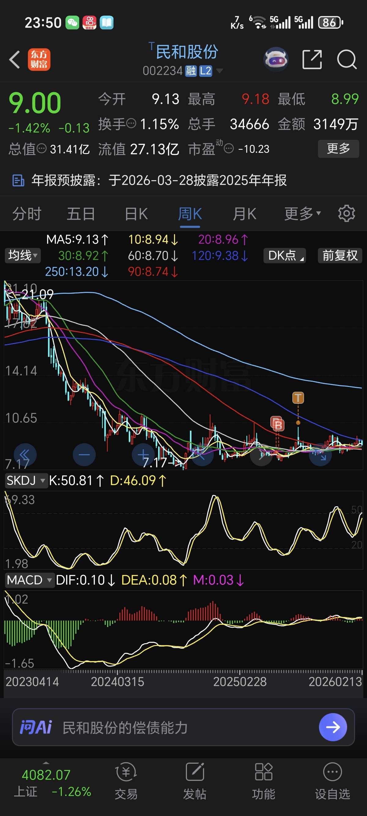$民和股份(SZ002234)$ 这么完美的周线震荡吸筹不好遇到啊