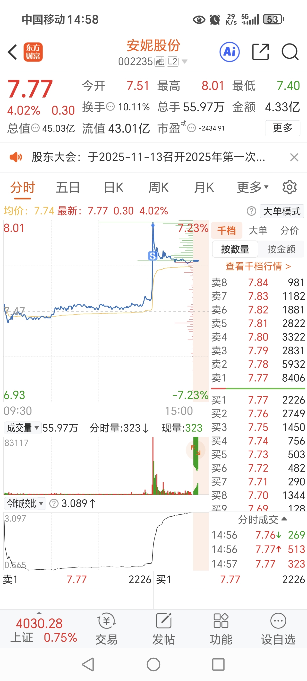 $安妮股份(SZ002235)$ 进来两个多月 走了