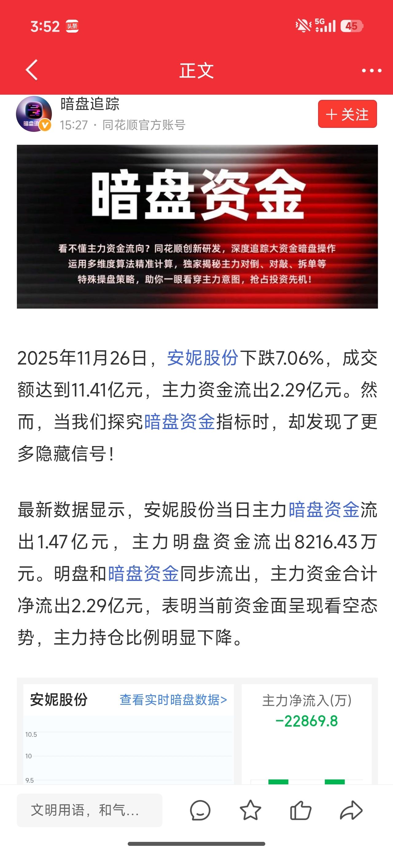 $安妮股份(SZ002235)$ 暗盘流出1.47亿