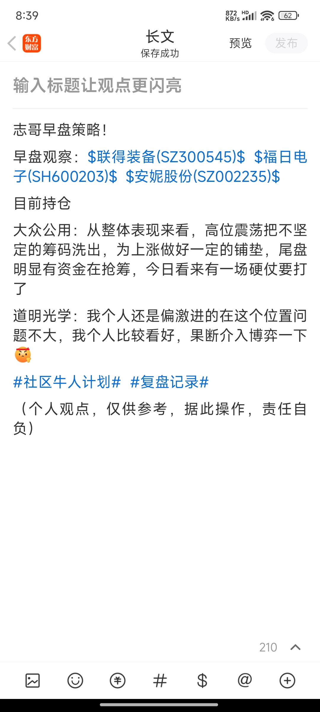 温馨提示: 1.根据《证券法》规定,禁止编造、传播虚假信息或者误导性信息,扰乱证券市场;2.用户在本社区发表的所有资料、言论等仅代表个人观点,与本网站立场无关,不对您构成任何投资建议。用户应基于自己的独立判断,自行决定证券投资并承担相应风险。《东方财富社区管理规定》