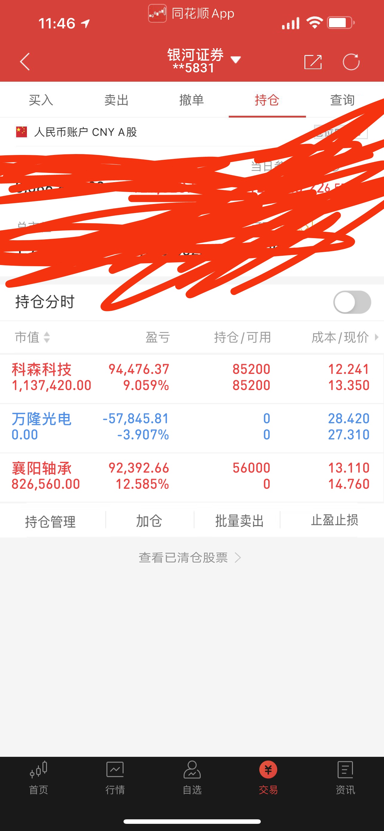 $安妮股份(SZ002235)$ 大家上午好啊,更新一下今日持仓,给万隆光电给及时止损了,科森科技继续持有下午在观望一下$广济药业(SZ000952)$