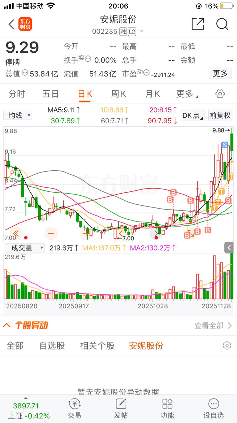 $安妮股份(SZ002235)$ 虽然我也持有,但是兄弟们也不要过于乐观了,纵观停复牌一字暴涨的票无一不是一片喊举报内幕之声,哪有像安妮这一片欢声笑语