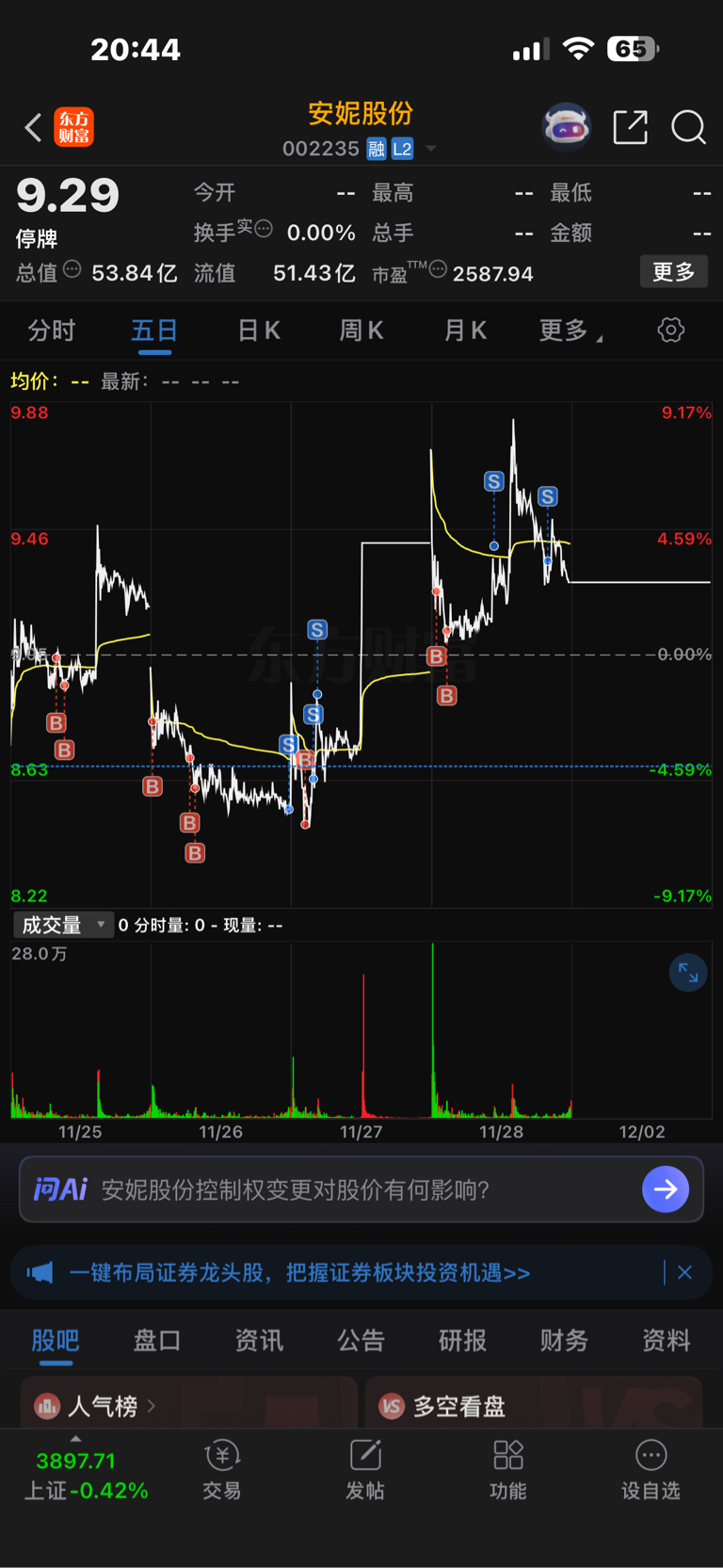 $安妮股份(SZ002235)$ 哎 上周五尾盘出了大半仓,还好留了点底仓