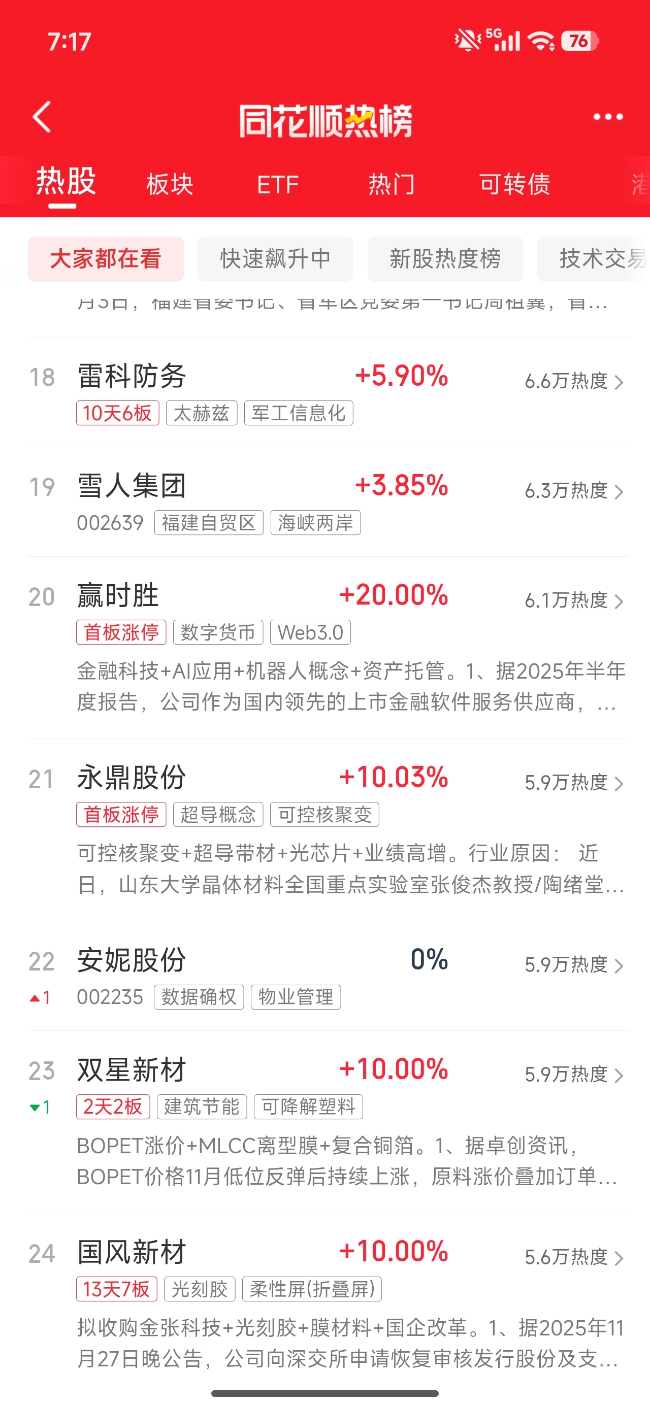 $安妮股份(SZ002235)$ 同花顺排名热度持续上升