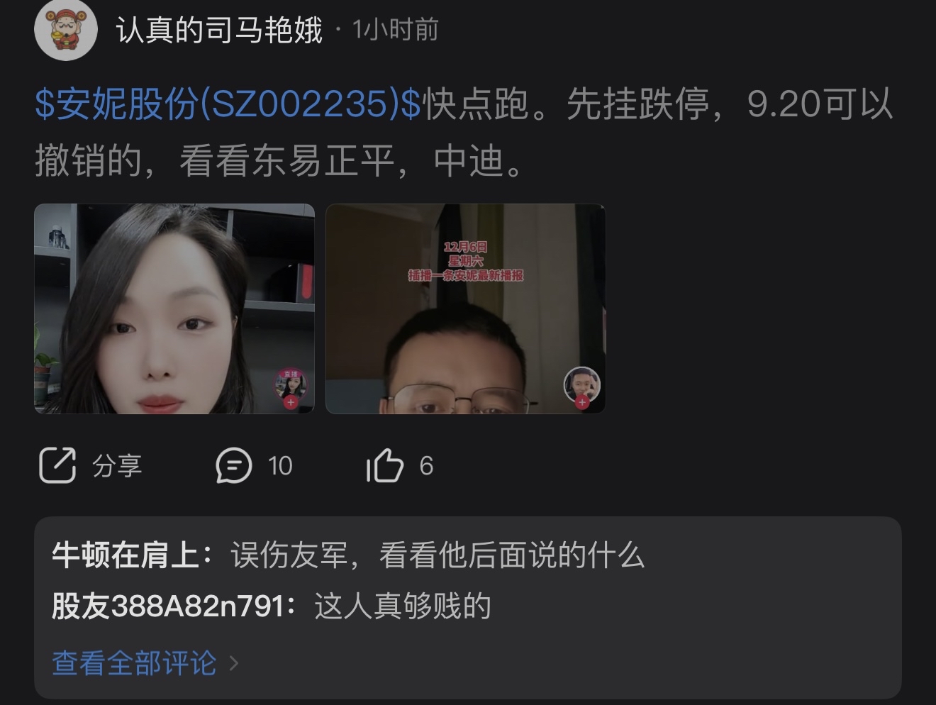 $安妮股份(SZ002235)$ 快看快看快这个马艳娥是多见不得我们全部亏死
