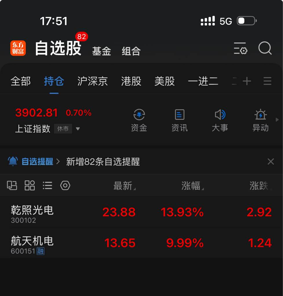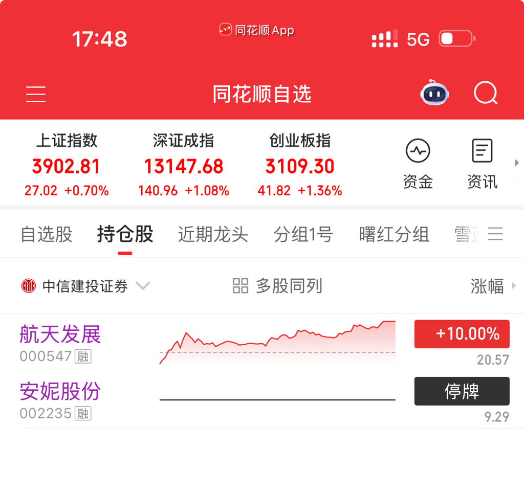 两个帐号,4只股,明天我要继续起飞吗