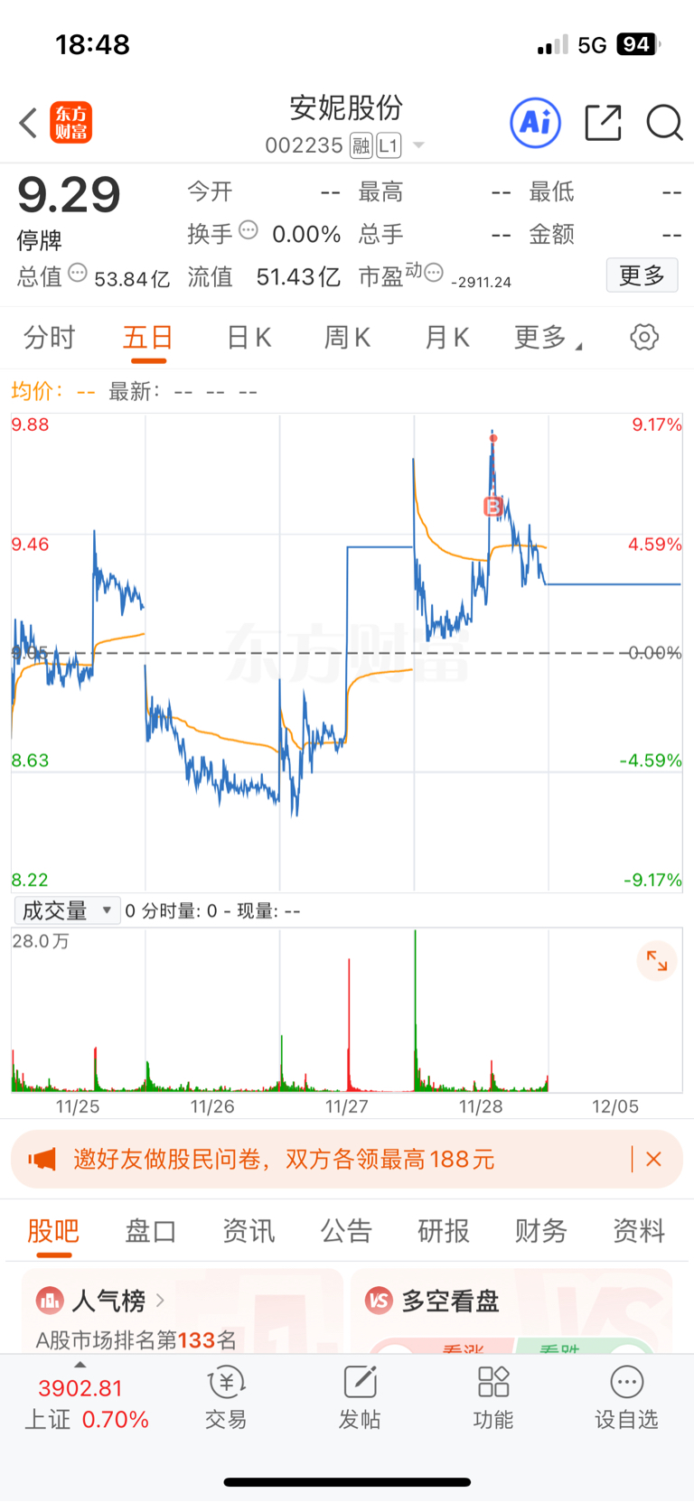 $安妮股份(SZ002235)$ 来,等你们进来给我解套