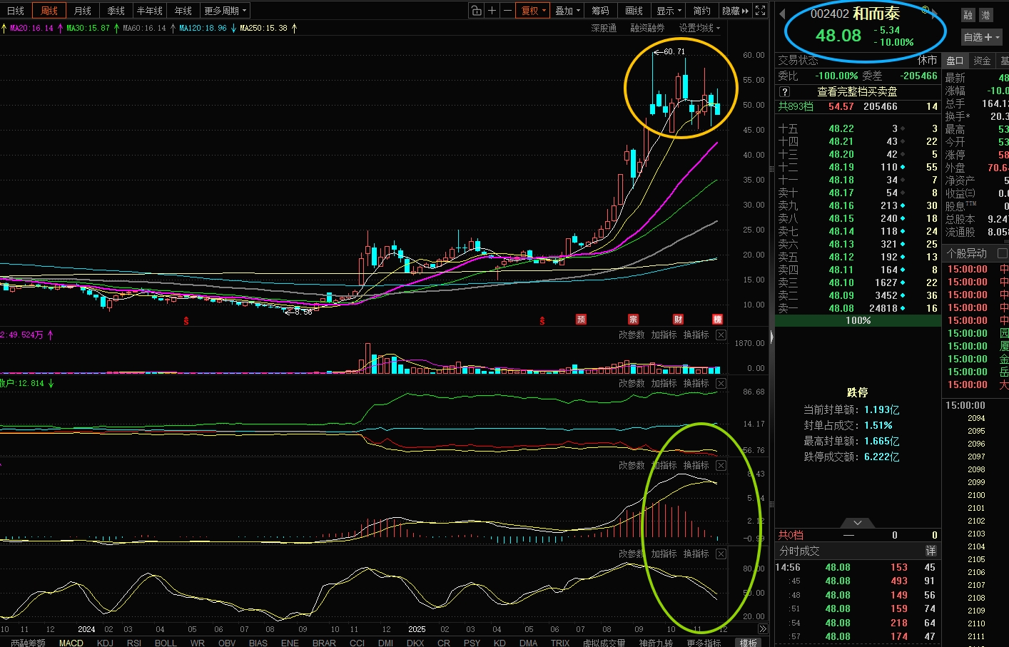 002402和而泰周级别如期一次共振杀跌日级别反覆盖随摩尔线程上市首日见光死下压