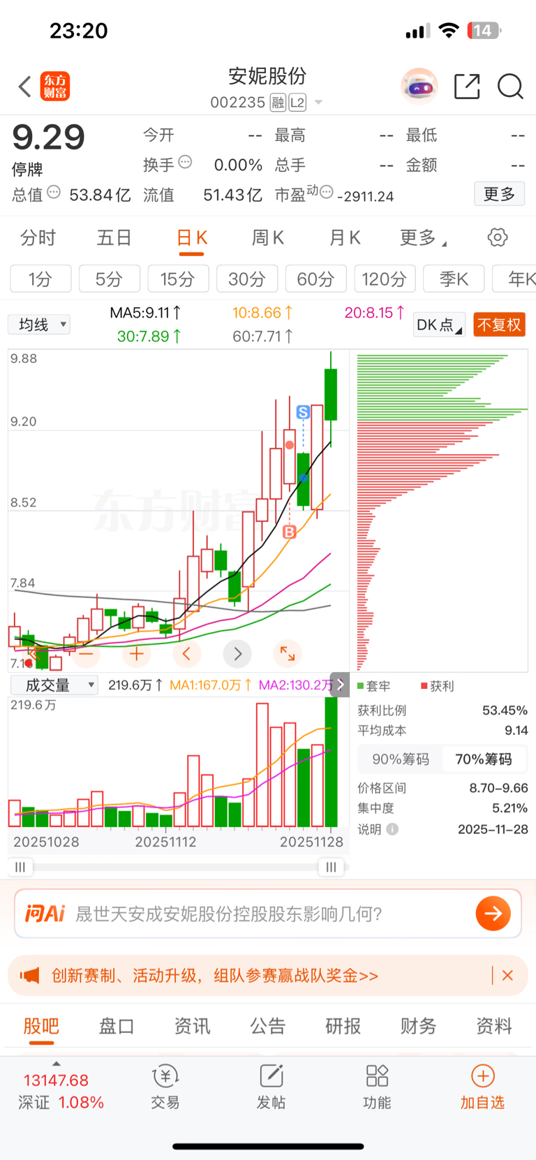 $安妮股份(SZ002235)$ 涨停前割肉了