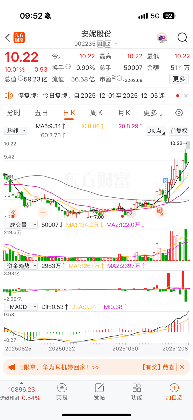 $安妮股份(SZ002235)$ 回头一看又错过了一波大肉