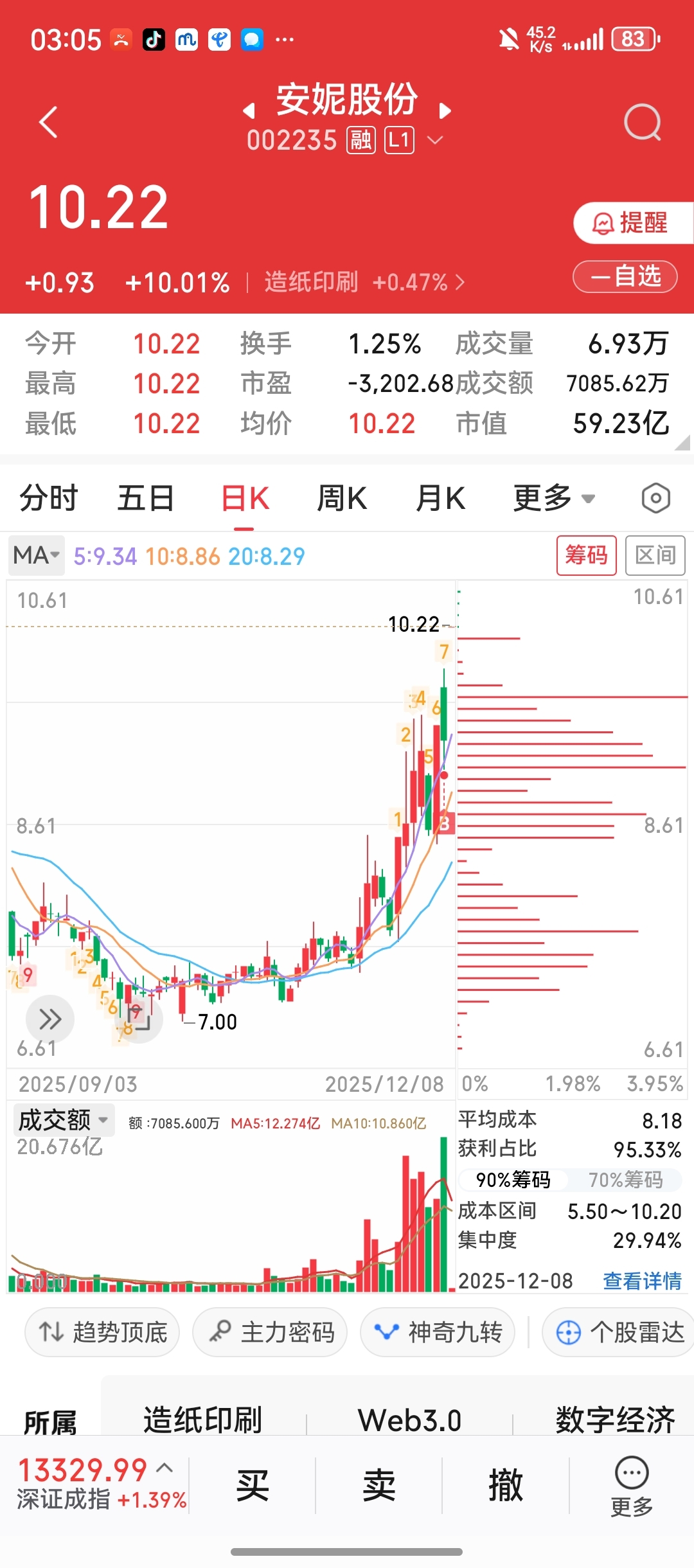 $安妮股份(SZ002235)$ 这跟中彩票有什么区别半仓坐稳了