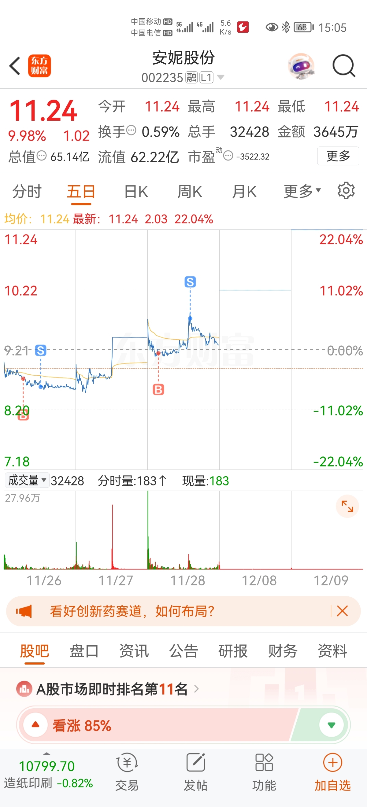 $安妮股份(SZ002235)$ 太难受了,每天一点波动都没有