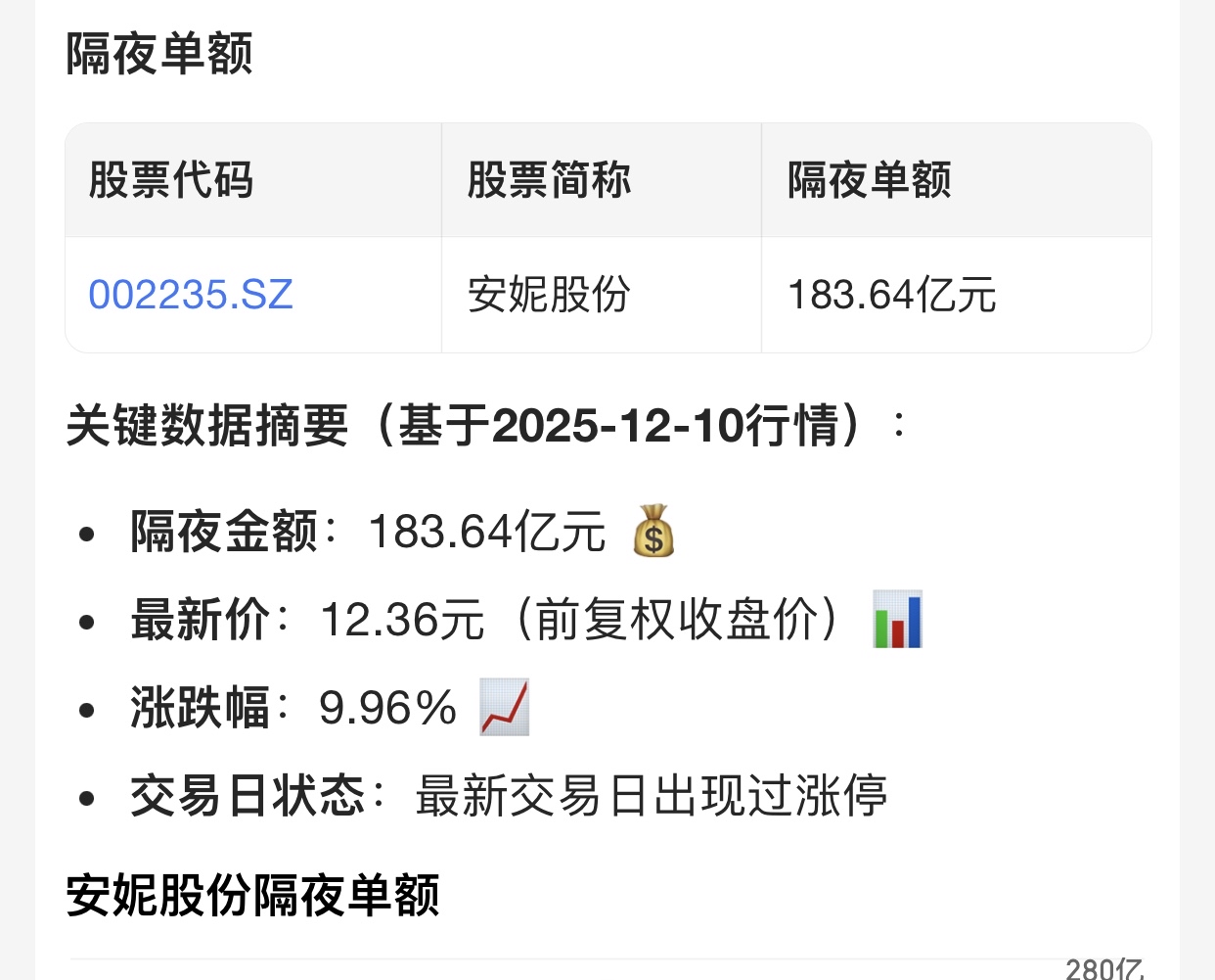 $安妮股份(SZ002235)$ 昨晚这隔夜单