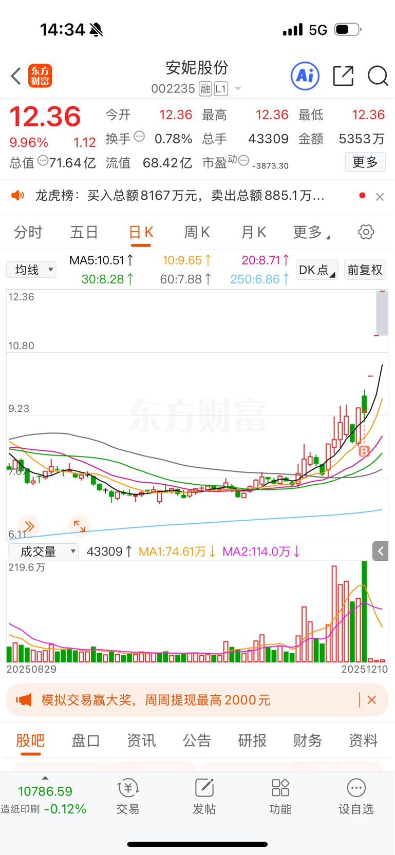 $安妮股份(SZ002235)$ 来得早不如来得巧
