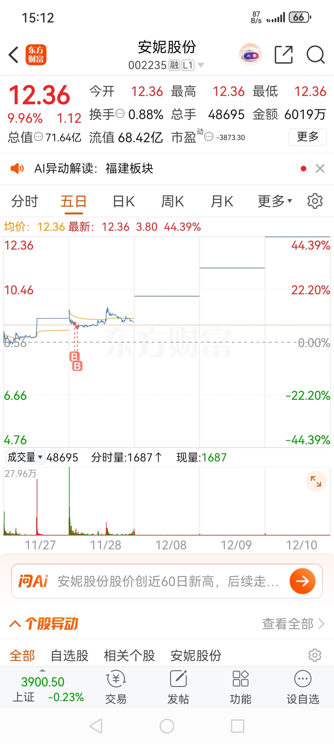 $安妮股份(SZ002235)$ 拍断大腿啊,打了个窝子,就10手